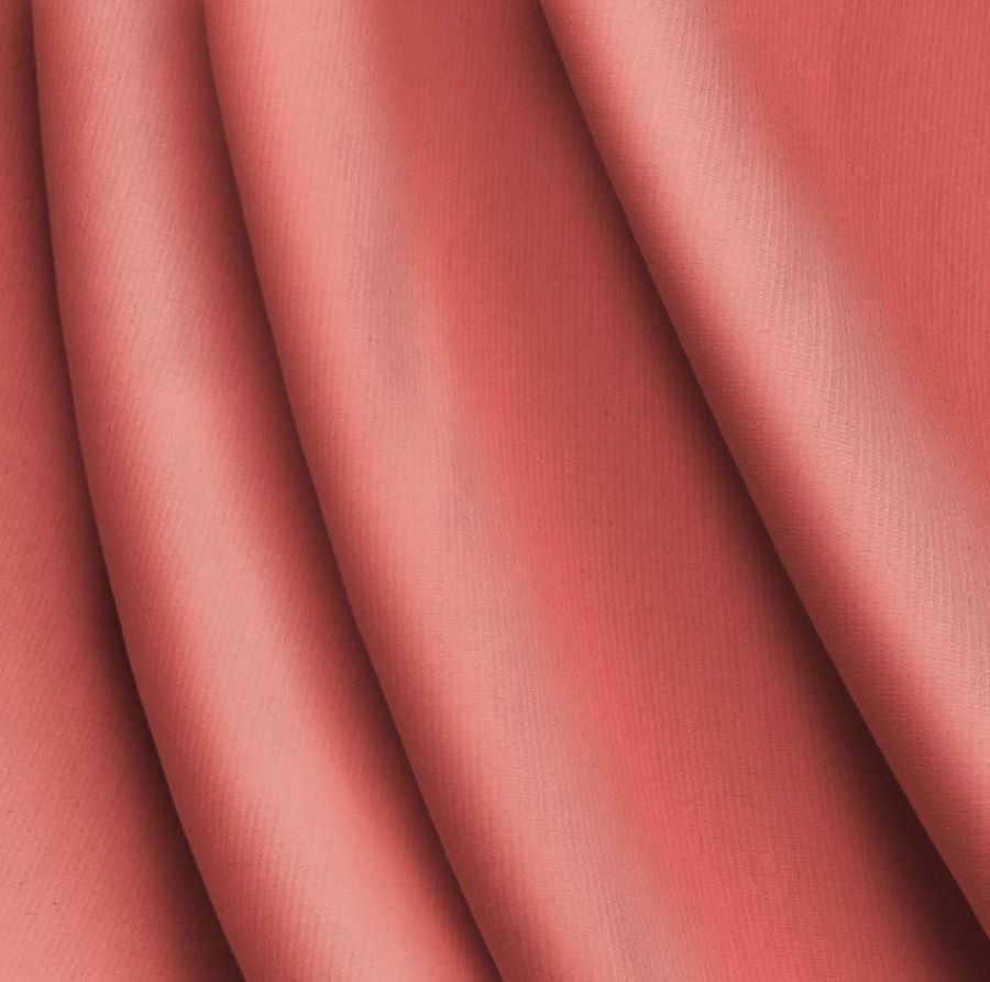 La tela base es el Punto Roma Elástico - Lyon, una tela de punto con una composición del 97% poliéster y un 3% de elastano. El gramaje de la tela es de 282 gr/m2 y tiene un ancho de 150 cm. El color liso impreso es una tonalidad de rojo claro, con los siguientes valores CMYK: 0 71 53 0. Este color muestra una tonalidad cálida y vibrante que simboliza la energía y la pasión.