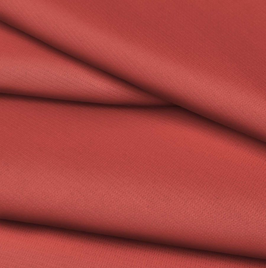 La tela base del tejido es el Punto Roma Elástico Lyon, con una composición de 97% poliéster y 3% elastano, gramaje de 282 gr/m2 y un ancho de 150 cm. El color liso impreso es rojo mate, con los atributos CMYK de 15 80 69 4. El color rojo es tradicionalmente asociado con la pasión, la fuerza y la vitalidad, evocando emociones fuertes y enérgicas. El rojo mate, al ser un tono apagado y menos llamativo, puede ser usado en prendas y muebles para mantener un tono cálido y agradable sin llegar a ser demasiado vibrante. El rojo mate se combina especialmente bien con tonos neutros como el gris, el negro y el blanco. Es importante destacar que la tela está impresa con el color liso a una sola cara por impresión digital textil y no es un tejido tintado.