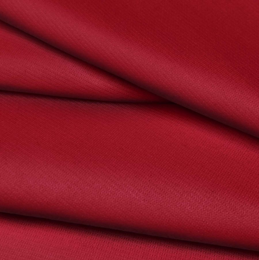 La tela base es el Punto Roma Elástico - Lyon, con una composición de 97% poliéster y 3% elastano y un gramaje de 282 gramos por metro cuadrado. El color liso impreso es un Rojo Carmín con un CMYK de 26 100 91 28. Este color profundo y vibrante combina muy bien con tonos cálidos como el naranja o el amarillo, así como con tonos fríos como el azul o el verde.