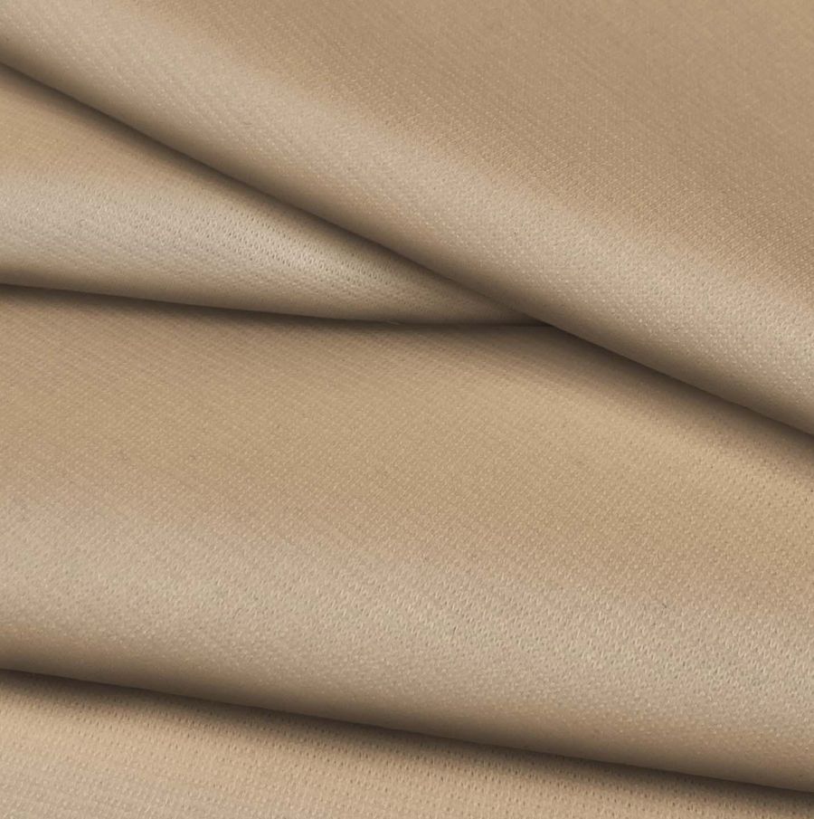 La tela base es Punto Roma Elástico - Lyon, compuesta por 97% poliéster y 3% elastano, con un gramaje de 282 gr/m2 y una anchura de 150 cm. El color liso impreso es Rojo Beige, que resulta de la combinación de 18% de tinta Cyan, 32% de tinta Magenta, 48% de tinta Yellow y 6% de tinta Black (CMYK: 18 32 48 6). Este color se caracteriza por ser vibrante y cálido, siendo muy versátil en combinación con otros colores como puede ser el negro, beige, blanco, gris o azul marino. Hay que puntualizar que la tela está impresa con el color liso a una sola cara por impresión digital textil, lo que quiere decir que no hay penetración de la tinta en la tela.