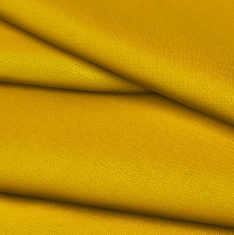 La tela base de este producto es Punto Roma Elástico - Lyon, una tela de punto compuesta por 97% de poliéster y 3% de elastano, con un gramaje de 282 gr/m2 y un ancho de 150 cm. El color liso impreso es un naranja intenso, con tonalidades de azafrán, conseguido mediante la técnica de sublimación con un CMYK de 1 40 96 0. Este color simboliza la energía, la creatividad y la vitalidad, además combina bien con otros colores como el blanco, el negro, el gris y el azul.