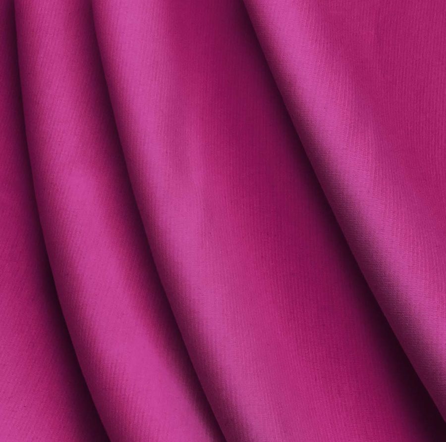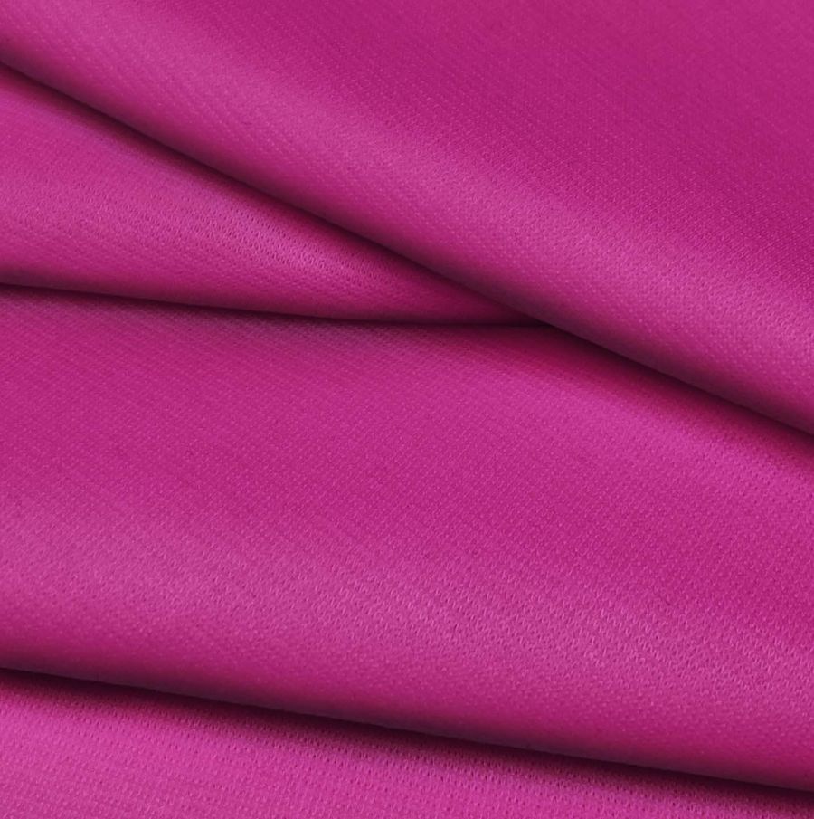 La tela base es el Punto Roma Elástico - Lyon, una tela de punto compuesta por un 97% de poliéster y un 3% de elastano, con un gramaje de 282 gr/m2 y un ancho de 150 cm. El color liso impreso es de un rosa clavel oscuro, con una tinta cyan de 24, tinta magenta de 94, tinta yellow de 2 y tinta black de 0, un CMYK de 24 94 2 0. Este color combina de manera ideal con tonos neutros, como el blanco o el gris, o con colores más vivos, como el verde o el azul. Es importante destacar que el tejido está impreso con el color liso a una sola cara por impresión digital textil, lo que significa que no es un tejido tintado sino impreso por una sola cara.