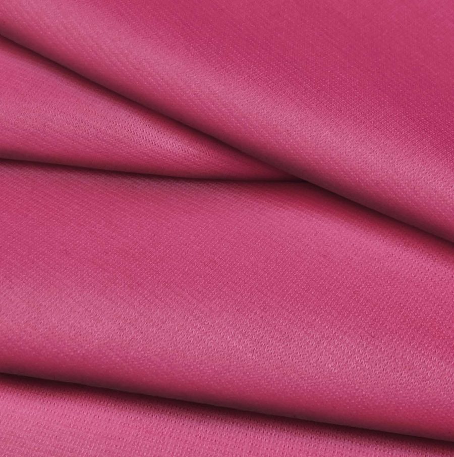 La tela base es el Punto Roma Elástico - Lyon, de tipo tela de punto, compuesta por un 97% de poliéster y un 3% de elastano, con un gramaje de 282 gr/m2 y un ancho de 150 cm. El color liso impreso es Rosa Bouganvilla, con los siguientes porcentajes de tinta: Cyan 15, Magenta 84, Yellow 27 y Black 3, traducibles a CMYK 15 84 27 3. Este color se caracteriza por ser un tono fuerte y vibrante, simbolizando la pasión y la energía. Combinado con otros colores, como el negro, el blanco, el gris o el nude, puede lograr combinaciones muy elegantes, atrevidas y modernas.
