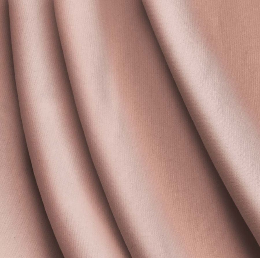 La tela base es el Punto Roma Elástico - Lyon, compuesta de 97% poliéster y 3% elastano, con un gramaje de 282 gr/m2 y un ancho de 150 cm. El color liso impreso es de tonalidades rosa caramelo, con un CMYK de 7 42 36 0. Este color secundario evoca la suavidad, la dulzura y el romanticismo. Combina perfectamente con tonos pastel como el azul cielo, el verde menta y el gris perla.