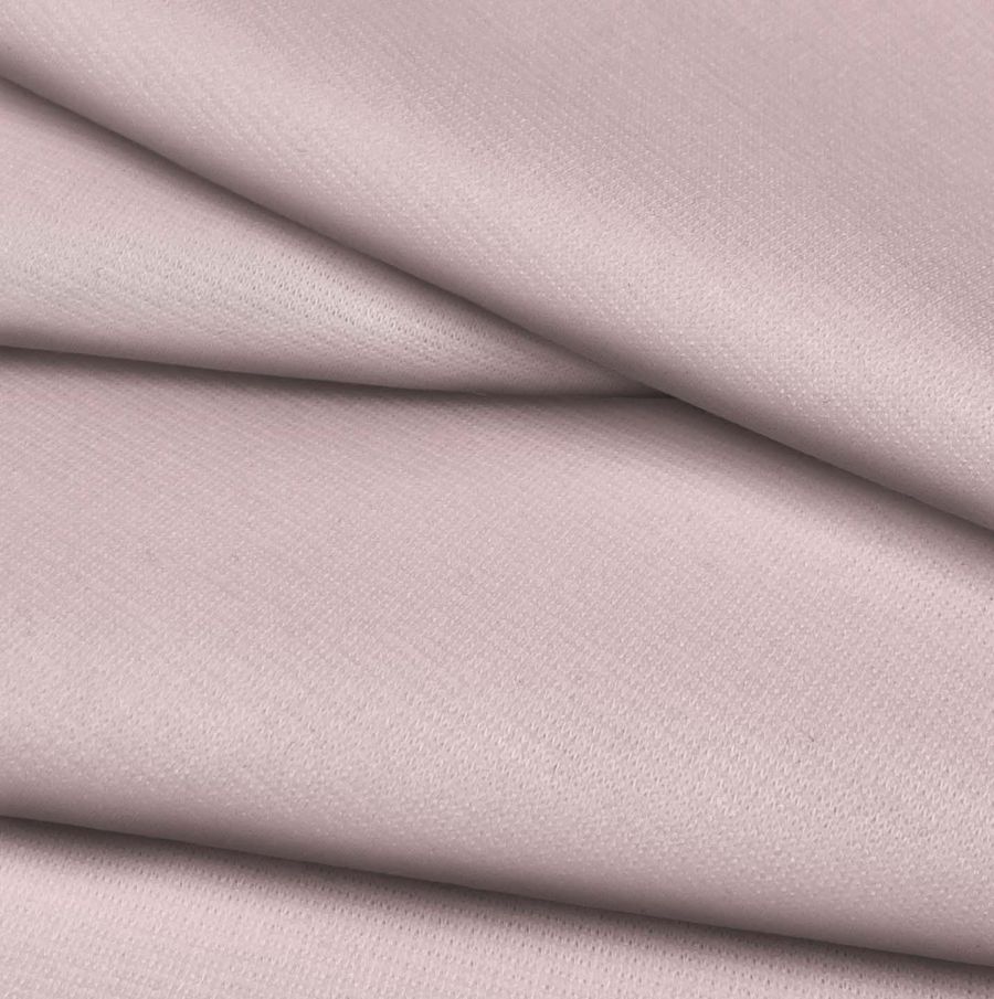 La tela base es el Punto Roma Elástico - Lyon, compuesta mayoritariamente por poliéster y elastano con un gramaje de 282 gr/m2 y un ancho de 150 cm. El color liso impreso es un rosa Dogwood con una combinación de CMYK de 2 24 13 0. Este color secundario se puede asociar con la dulzura y la delicadeza, y se puede combinar con tonos verdes y beige para lograr un estilo más natural y tranquilo.