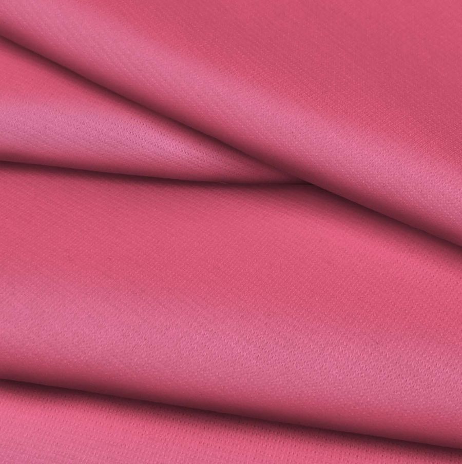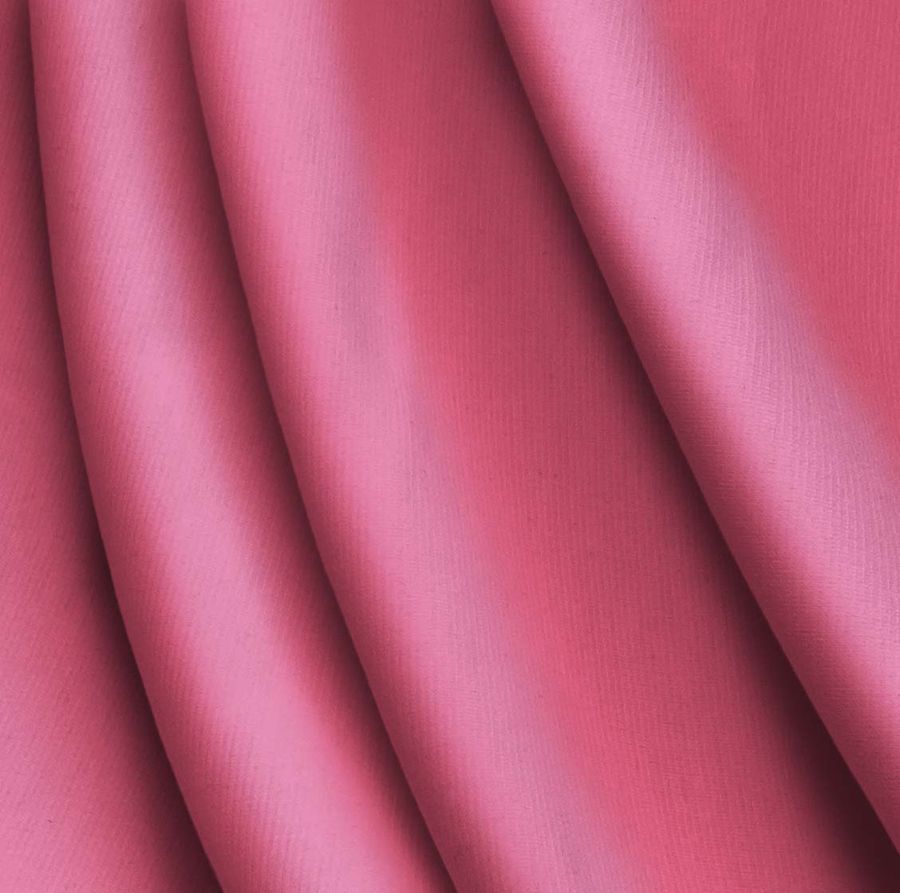 La tela base es el Punto Roma Elástico – Lyon, compuesta por un 97% de poliéster y un 3% de elastano, con un gramaje de 282 gr/m2 y un ancho de 150 cm. El color liso impreso es Rosa Brink, con una composición de tinta CMYK de 0 75 29 0. Este color secundario se caracteriza por transmitir una sensación de romanticismo y suavidad, en combinación con otros colores como el blanco, el gris y el negro, se logran resultados elegantes y sofisticados. La tela está impresa con el color liso a una sola cara por impresión digital textil.
