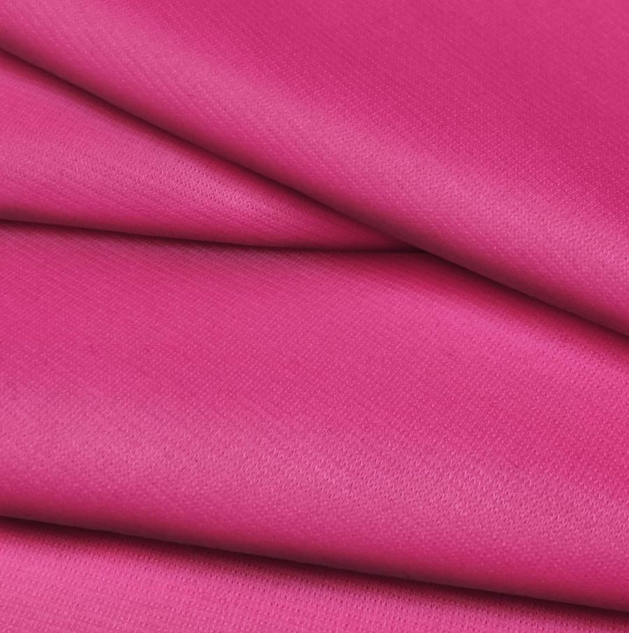 La tela base es Punto Roma Elástico - Lyon, una tela de punto compuesta por 97% poliéster y 3% elastano, con un gramaje de 282g/m2 y un ancho de 150cm. El color liso impreso es de tonalidad rosa cerise, con un contenido de tinta cyan de 0, magenta de 87, yellow de 12 y black de 0, y un CMYK de 0 87 12 0. Este color secundario es intenso y vivo, evocando la pasión, la vitalidad y la energía. Se combina particularmente bien con colores neutros como el blanco, el negro y el gris, así como también con tonalidades similares como el rojo, el fucsia y el morado.