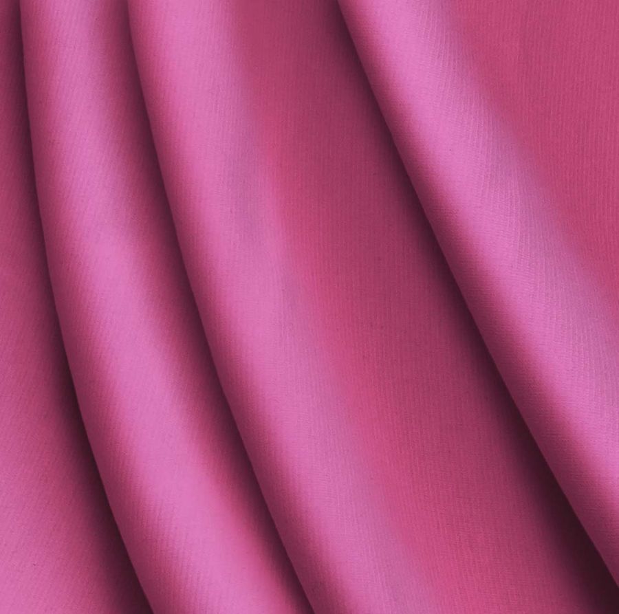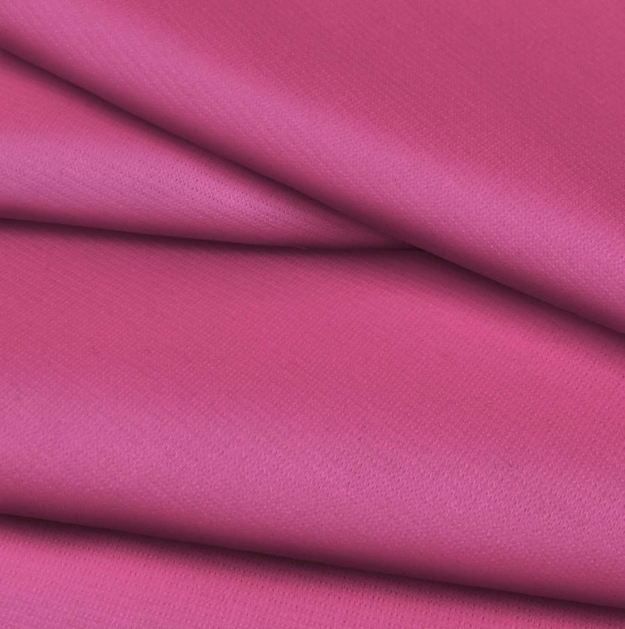 La tela base en cuestión es el Punto Roma Elástico - Lyon, una tela de punto compuesta por un 97% de poliéster y un 3% de elastano, con un gramaje de 282 gr/m2 y un ancho de 150 cm. Tiene un tacto suave y una textura agradable al contacto con la piel. En cuanto a su color liso impreso, se trata de un rosa fandango que se obtiene a través de la técnica de sublimación, con una mezcla de tintas de cian (8), magenta (80), amarillo (19) y negro (0) en un CMYK de 8 80 19 0.