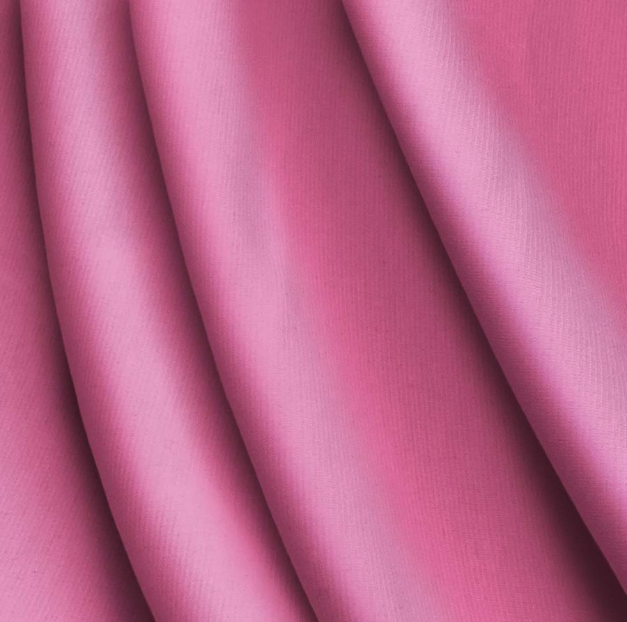 La tela base es el Punto Roma Elástico - Lyon, compuesta por un 97% de poliéster y un 3% de elastano, con un gramaje de 282 gr/m2 y un ancho de 150 cm. El color liso impreso es Rosa Francés, con una combinación de tinta de Cyan 0, Magenta 71, Yellow 8 y Black 0 (CMYK: 0 71 8 0). Es un color suave y delicado que se combina perfectamente con tonos neutros como el blanco y el gris. La tela está impresa con este color liso a una sola cara por impresión digital textil.