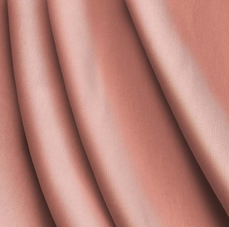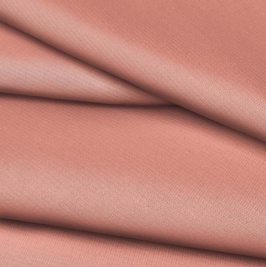 La tela base es Punto Roma Elástico - Lyon, una tela de punto compuesta por 97% de poliéster y 3% de elastano, con un gramaje de 282 gr/m2 y un ancho de 150 cm. El color liso impreso es una combinación de rosa y melocotón, con una tinta cyan de 0, una tinta magenta de 53, una tinta yellow de 42 y una tinta black de 0. El CMYK del color es 0 53 42 0. Este color secundario tiene una gran simbolismo, pues el rosa representa la ternura y la dulzura, mientras que el melocotón simboliza la juventud y la energía. Además, este color combina muy bien con colores neutros como el blanco, el gris o el beige. La tela base está impresa con el color liso a una sola cara por impresión digital textil, lo que garantiza una alta calidad y definición del color.