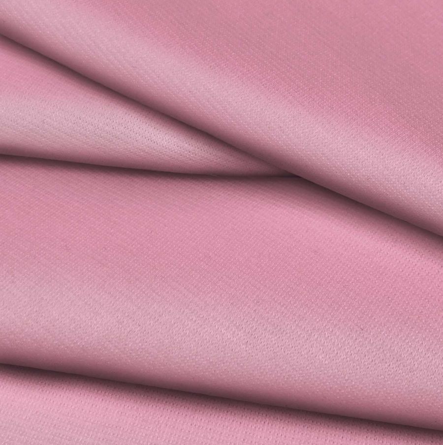 La tela base de este tejido es el Punto Roma Elástico - Lyon, un tejido de punto con composición de 97% poliéster y 3% elastano, un gramaje de 282 gr/m2 y un ancho de 150 cm. El color liso impreso es un rosa confite, con una tinta cyan de 0, magenta de 51, yellow de 9 y black de 0, lo que equivale a un CMYK de 0 51 9 0. Este color secundario de tonalidad suave y delicada evoca la feminidad y la dulzura, y se combina bien con colores neutros como el gris y el beige, así como tonos pastel como el amarillo y el verde agua.