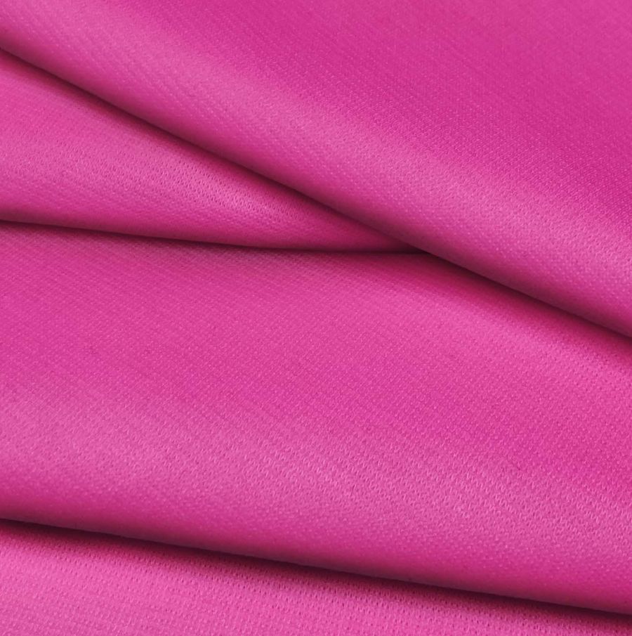 La tela base es la Punto Roma Elástico - Lyon, una tela de punto con una composición de 97% poliéster y 3% elastano, que pesa 282 gr/m2 y tiene un ancho de tela de 150 cm. Su color liso impreso es de un rosa intenso que se asemeja al color rosé bonbon, el cual se obtiene mediante el uso de la siguiente combinación de tintas: 0 de tinta cyan, 83 de tinta magenta, 0 de tinta yellow y 0 de tinta black. Este color secundario es atractivo y versátil, combina bien con tonos oscuros como el negro y el grafito, o con tonos pasteles como el blush y el amarillo pálido.