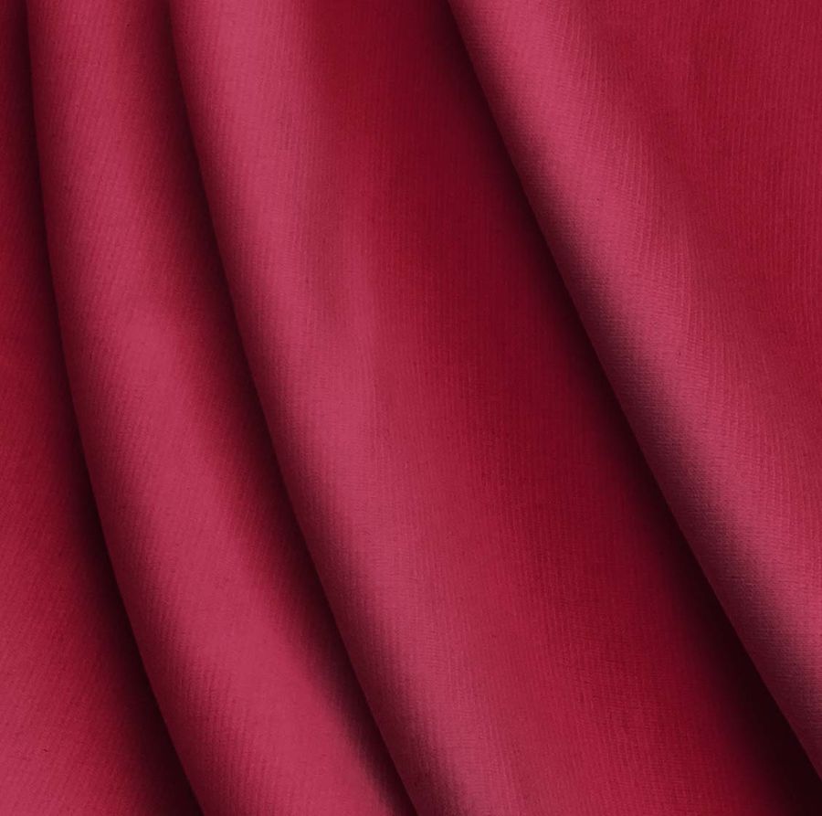 La tela base es el Punto Roma Elástico - Lyon, una tela de punto compuesta por 97% poliéster y 3% elastano, con un gramaje de 282 gr/m2 y un ancho de 150 cm. El color liso impreso es de un tono rosa intenso, con un CMYK de 22 100 65 17. Es un color fuerte y vibrante, que simboliza el amor, la pasión y el romance. Combina bien con tonos grises y cremas, creando un efecto equilibrado y elegante.