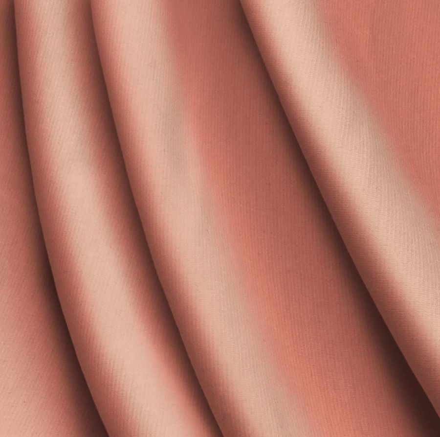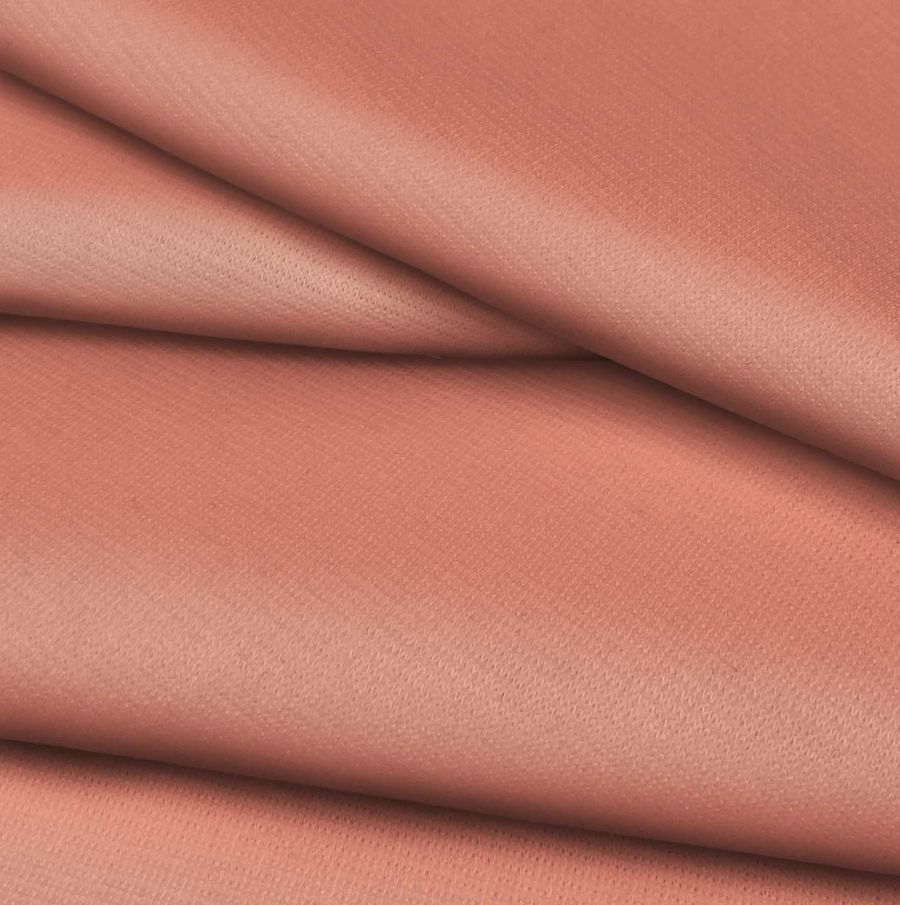 La tela base es Punto Roma Elástico - Lyon, una tela de punto compuesta por 97% poliéster y 3% elastano, con un gramaje de 282 gr/m2 y un ancho de 150 cm. El color liso impreso es rosa salmón, con un CMYK de 0 58 50 0. Este color simboliza la feminidad y la sensibilidad, y técnicamente se destaca por su suavidad al tacto. Combina especialmente bien con los colores blanco, negro, gris y beige.