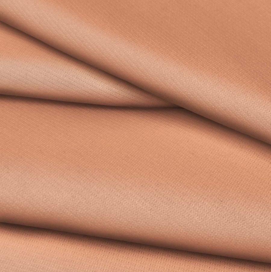 La tela base de este tejido es el Punto Roma Elástico - Lyon, una tela de punto compuesta por un 97% de poliéster y un 3% de elastano, con un gramaje de 282 gr/m2 y un ancho de 150 cm. El color liso impreso en esta tela es rosa salmón luz, con un CMYK de 0 47 51 0.