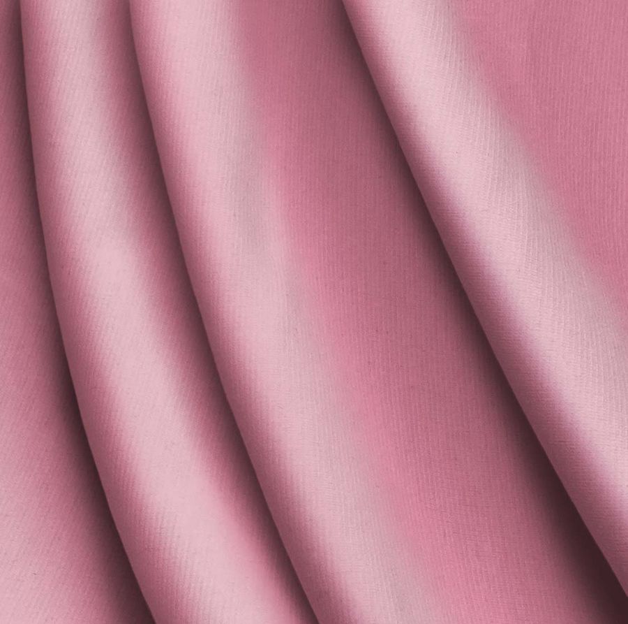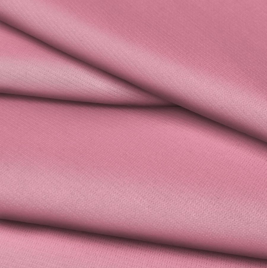 La tela base es el Punto Roma Elástico - Lyon, una tela de punto compuesta por 97% de poliéster y 3% de elastano, con un gramaje de 282 gr/m2 y un ancho de 150 cm. El color liso impreso en este tejido tiene tonos de rosa y sorbete rosa, con un CMYK de 0 56 16 0. El color secundario tiene un carácter juvenil y alegre, que simboliza el optimismo y la frescura. Este color puede combinarse a la perfección con tonos neutros o grises, y también puede resultar interesante al mezclarlo con colores vibrantes como el amarillo o el turquesa.