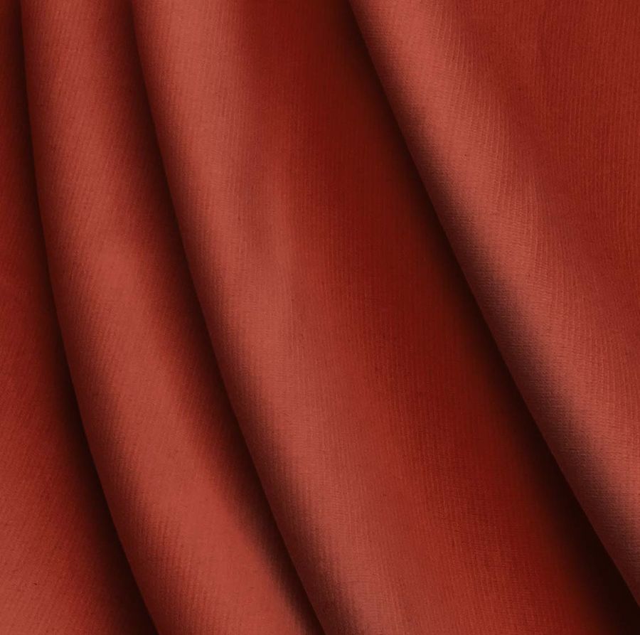 La tela base es un Punto Roma Elástico - Lyon, compuesta por un 97% de poliéster y un 3% de elastano, con un gramaje de 282 gr/m2 y un ancho de 150 cm. El color liso impreso en esta tela es un marrón almagra, con un CMYK de 24 94 100 21. Este color se caracteriza por ser intenso, cálido y terroso, evocando a la tierra y la naturaleza. Combina especialmente bien con tonos neutros y pasteles, como el beige, el blanco o el rosa pálido.