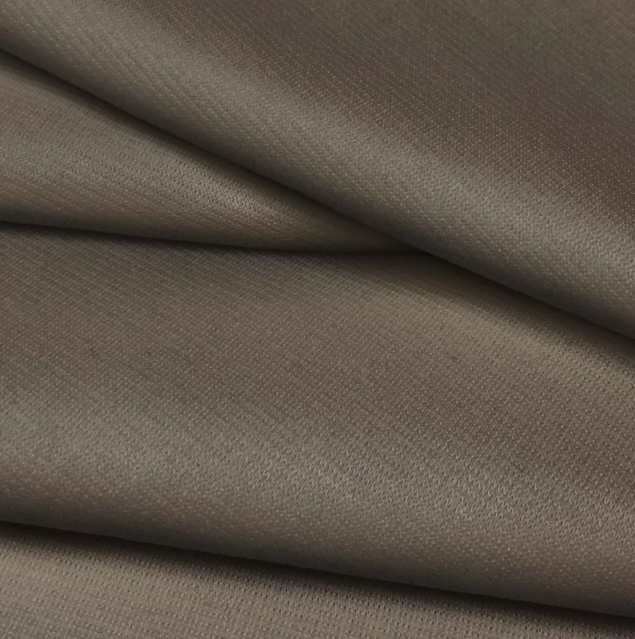Esta tela base es el Punto Roma Elástico - Lyon, compuesta mayoritariamente por poliéster y elastano, con un gramaje de 282gr/m2 y un ancho de 150cm. El color impreso es un Marron Ante, que representa el valor CMYK 51 48 57 44. Este color secundario se puede describir como un marrón suave, con tonos grisáceos y beige, que puede combinar perfectamente con otros tonos tierra, beige y negro. Es importante mencionar que el tejido está impreso con este color liso a una sola cara por impresión digital textil, lo que significa que la cara opuesta al estampado es blanca.