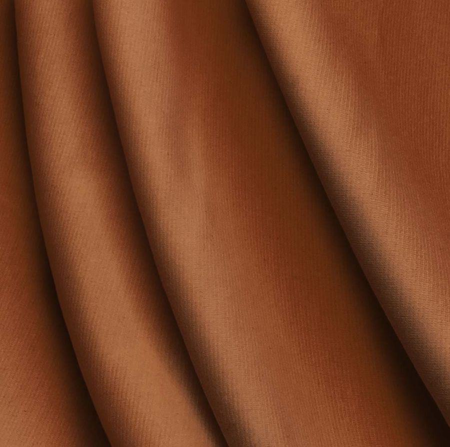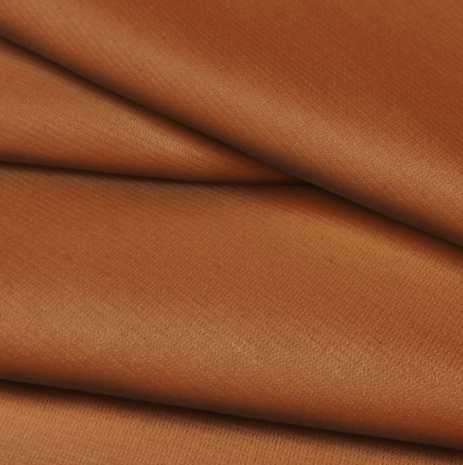 La tela base es el Punto Roma Elástico - Lyon, una tela de punto de 97% poliéster y 3% elastano con un gramaje de 282 gr/m2 y un ancho de 150 cm. El color liso impreso es un marrón-bronce antiguo, obtenido a través de la combinación de las tintas cian (28), magenta (69), amarillo (93) y negro (24) con un equilibrio de 28 69 93 24 en CMYK. El color se relaciona con la estabilidad, la seguridad y la madurez, y transmite un aspecto clásico y elegante. Este tono combina bien con tonos de beige, naranja, mostaza, rojo oscuro, color vino y oro.
