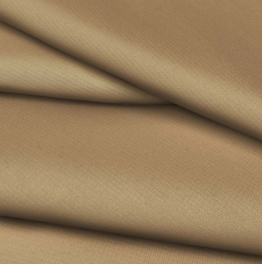 La tela base es el Punto Roma Elástico - Lyon, compuesta por 97% POLIÉSTER y 3% ELASTANO, con un gramaje de 282 gr/m2 y ancho de 150 cm. La variedad de color impreso disponible para esta tela es Marrón/Camello, con una mezcla en tintas CYMK de 26 39 60 15. La mezcla de estas tintas produce un tono cálido y terroso con un toque sutil de naranja y beige.