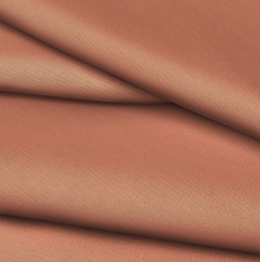 La tela base es el Punto Roma Elástico - Lyon, una tela de punto compuesta por 97% poliéster y 3% elastano, con un gramaje de 282 gr/m2 y un ancho de 150 cm. El color liso impreso es una combinación de marrón y carnelian, con un CMYK de 16 59 60 4. Este color secundario simboliza la energía, el entusiasmo y la vitalidad, y combina especialmente bien con tonos neutros como el gris y el beige. Cabe destacar que el tejido está impreso con el color liso a una sola cara por impresión digital textil, lo que significa que no es un tejido tintado sino impreso por una sola cara.