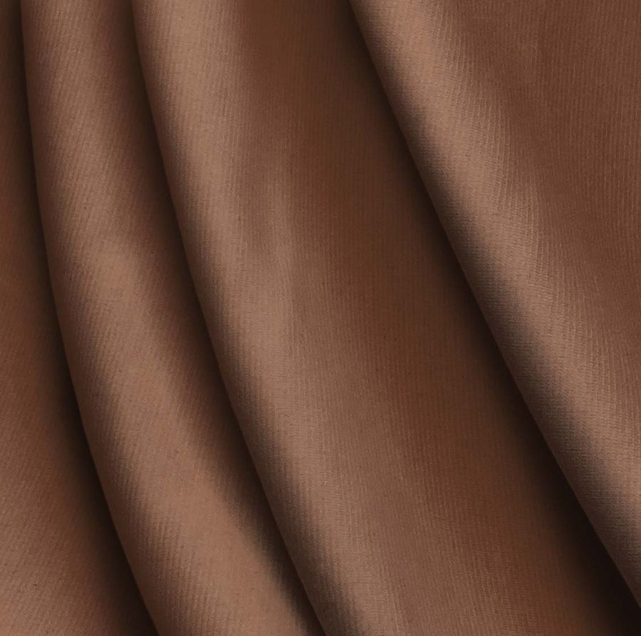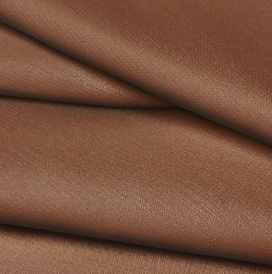 La tela base es un Punto Roma Elástico - Lyon, una tela de punto con composición de 97% poliéster y 3% elastano, con un gramaje de 282 gr/m2 y ancho de 150 cm. El color liso impreso es marrón chocolate con leche, que se refleja en el CMYK de 33 60 70 37. El color secundario es rico en tonos terrosos y destaca por sus connotaciones de seguridad y tranquilidad. Combina particularmente bien con tonos claros y neutros como el blanco o el crema, así como con el verde oliva y el naranja oscuro.