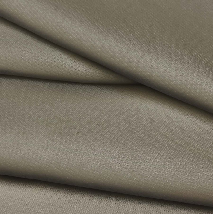 La tela base es el Punto Roma Elástico - Lyon, compuesta por 97% de poliéster y 3% de elastano, con un gramaje de 282 gr/m2 y un ancho de 150 cm. El color liso impreso es de color marrón cieno con un CMYK de 45 39 49 25. El color secundario es una mezcla entre el marrón y el gris, lo que lo hace un tono neutro que combina muy bien con otros colores oscuros, tonos tierra, rosas y beiges. Es importante destacar que la tela está impresa a una sola cara por medio de impresión digital textil, lo que la hace idónea para prendas de moda donde el dibujo o diseño es muy importante.