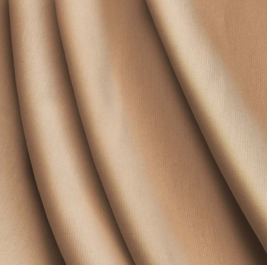 La tela base es el Punto Roma Elástico - Lyon, compuesta por un 97% de poliéster y un 3% de elastano, de un gramaje de 282 gr/m2 y un ancho de 150 cm, ideal para prendas de moda en invierno. El color liso impreso es Marrón Cuero, cuyo CMYK es 14 41 55 3. Este color secundario evoca a tierra, a naturaleza y a serenidad. Combina perfectamente con otros tonos terrosos, con verdes y azules oscuros, y con tonos cálidos como el naranja y el amarillo.