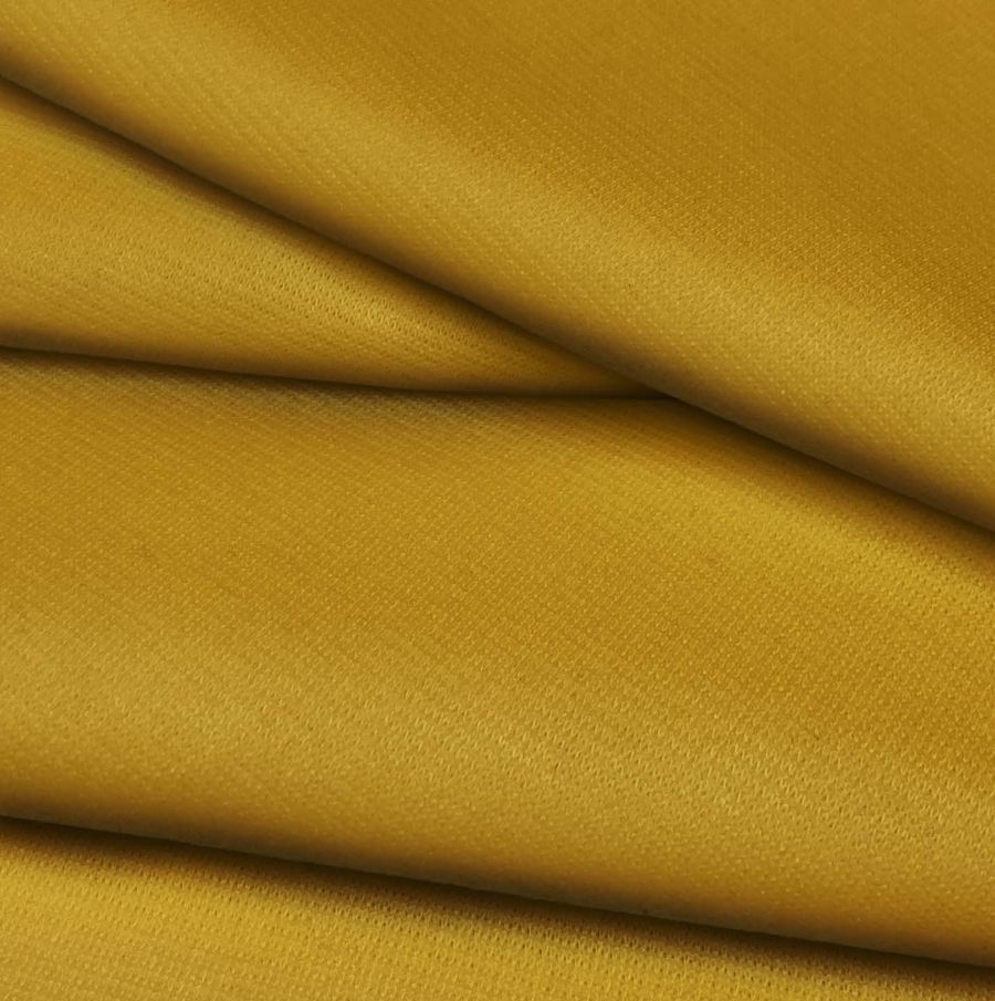 La tela base es el Punto Roma Elástico - Lyon, una tela de punto con una composición de 97% poliéster y 3% elastano. El color liso impreso en esta tela es un marrón oscuro dorado, con una tinta Cyan de 24, Magenta de 44, Yellow de 100, y Black de 14, representando el CMYK de 24 44 100 14. Este color simboliza la confianza y la sofisticación, y se combina bien con otros tonos oscuros, así como con tonos más claros como el beige o el blanco.