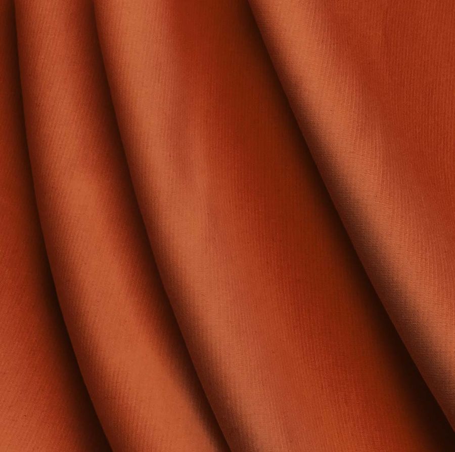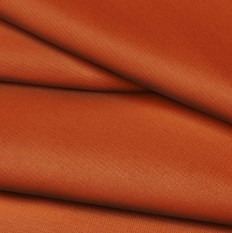 La tela base es el Punto Roma Elástico – Lyon, una tela de punto compuesta por un 97% de poliéster y un 3% de elastano, con un gramaje de 282 gr/m2 y un ancho de 150 cm. El color liso impreso en la tela es de un tono marrón-herrumbre, con un CMYK de 20 83 100 11. Este color transmite una sensación terrosa y cálida, convirtiéndolo en una excelente opción para prendas o complementos de invierno. El color secundario predominante en este tono es el magenta, que le acentúa la calidez y lo hace especialmente combinable con tonos naranjas, cremas y negros. Es importante destacar que este tejido está impreso con el color liso a una sola cara por impresión digital textil, lo que significa que no se trata de un tejido tintado sino impreso por una sola cara.