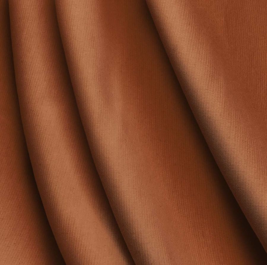 La tela base es Punto Roma Elástico - Lyon, una tela de punto compuesta por 97% de poliéster y 3% de elastano con un gramaje de 282 gr/m2 y un ancho de 150 cm. El color liso impreso en esta tela es marrón con un toque anaranjado, indicado por los valores CMYK de 27, 68, 89 y 21. Este color secundario se asocia con la tierra, la vitalidad y la energía creativa, y suelen combinarse con otros tonos neutros como el gris y el beige, o con colores más vivos como el amarillo o el verde.