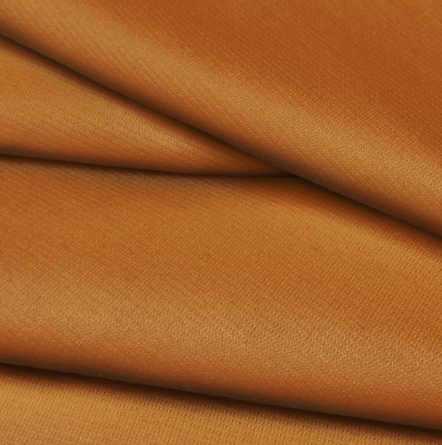 La tela base es el Punto Roma Elástico - Lyon, una tela de punto compuesta por un 97% de poliéster y un 3% de elastano, con un gramaje de 282 gr/m2 y un ancho de 150 cm. El color liso impreso es marrón brillante, con un CMYK de 23 63 97 13. Este color se caracteriza por su calidez y elegancia, y combina especialmente bien con tonos beige, miel y verde oliva. La tela está impresa con el color liso a una sola cara por impresión digital textil, lo que garantiza una alta calidad de imagen y una gran precisión en los colores y detalles.