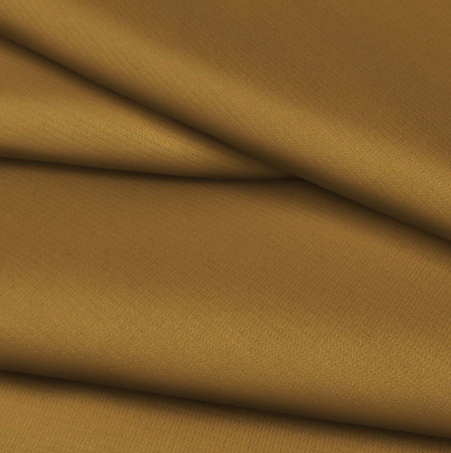 La tela tiene una textura suave al tacto, esto se debe a su composición y gramaje, lo que la convierte en una tela cómoda de llevar. El color marrón dorado refleja elegancia y sofisticación, lo que hace que la tela sea perfecta para prendas de moda de hombre o mujer como pantalones, joyería, bolsos y prendas de punto. Además, es ideal para usarse en la decoración del hogar, particularmente en el comedor para la fabricación de servilletas.