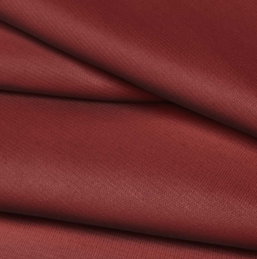 La tela base es el Punto Roma Elástico - Lyon, una tela de punto compuesta por un 97% de poliéster y un 3% de elastano, con un gramaje de 282 gr/m2 y un ancho de 150 cm. El color liso impreso es de tonalidades marrón y rojizo, con un CMYK de 32 91 78 43. Este color secundario simboliza la estabilidad, la calidez y la pasión. Además, combina especialmente bien con tonalidades neutras como el beige, el gris o el blanco. Es importante destacar que la tela está impresa con el color liso a una sola cara por impresión digital textil, lo que significa que no es un tejido tintado, sino impreso por una sola cara.
