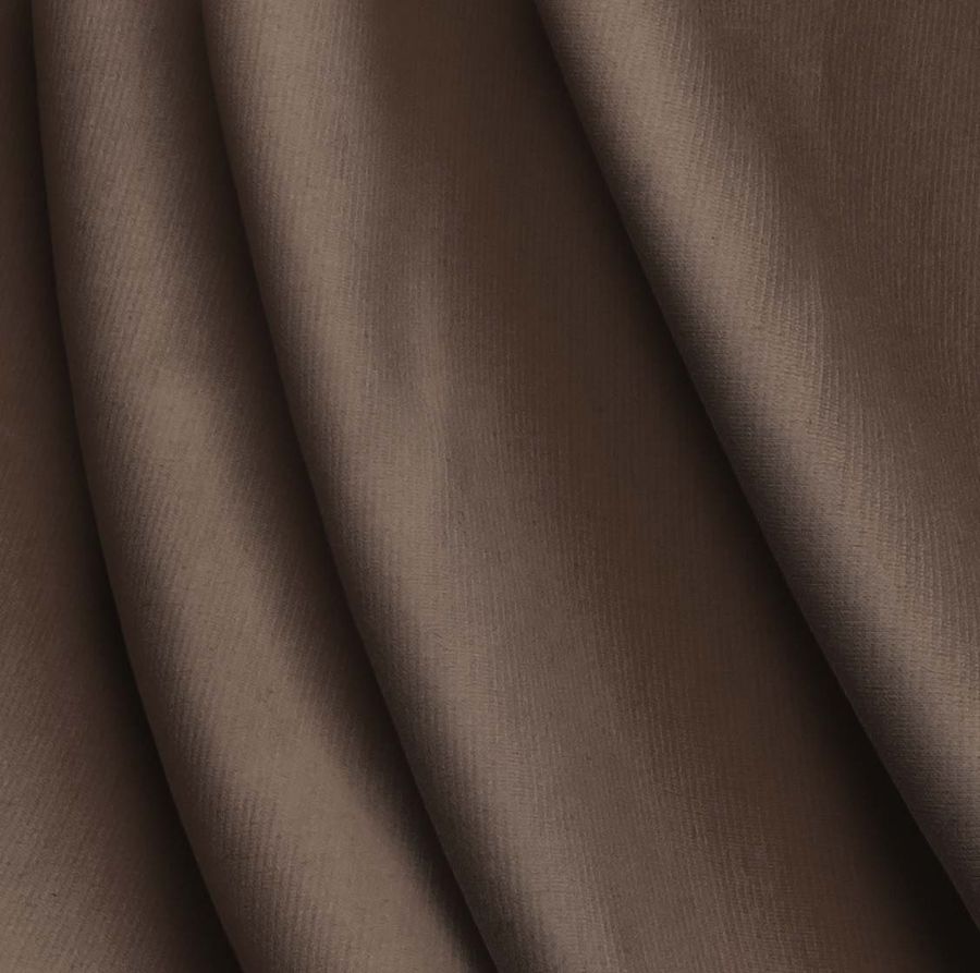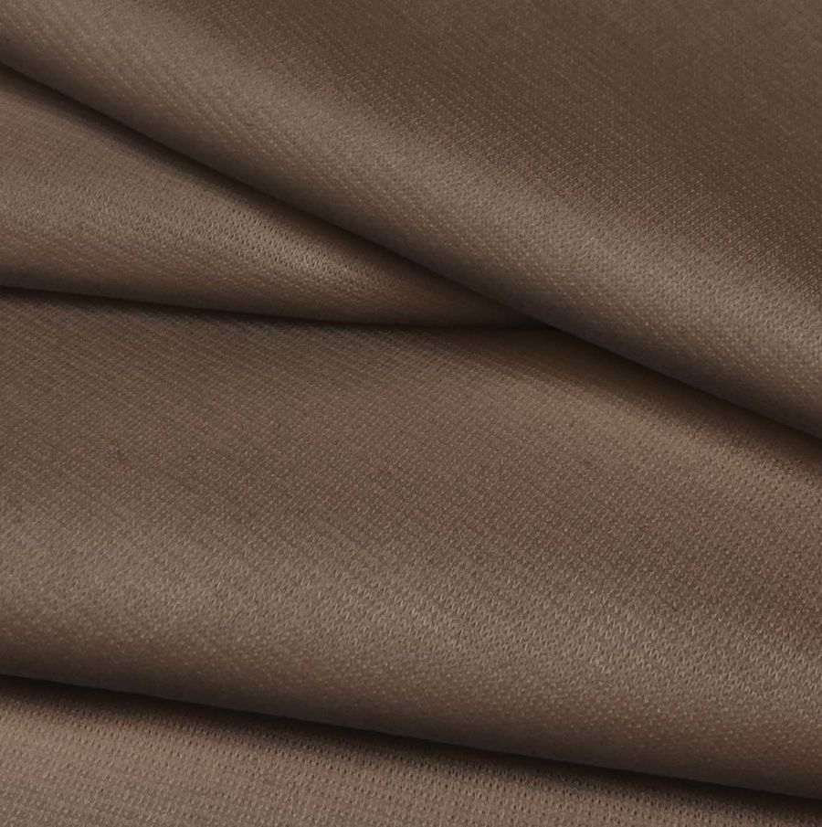 La tela base, conocida como Punto Roma Elástico-Lyon, está compuesta principalmente de poliéster y elastano, con un gramaje de 282 gr/m2 y un ancho de 150 cm. El color liso impreso en esta tela es un marrón-moca, con una combinación de tintas cian, magenta, amarillo y negro que dan lugar a un CMYK de 43 54 60 50. Este color secundario es cálido y acogedor, ideal para la temporada de invierno. Se combina especialmente bien con colores cremosos y otras tonalidades marrones.