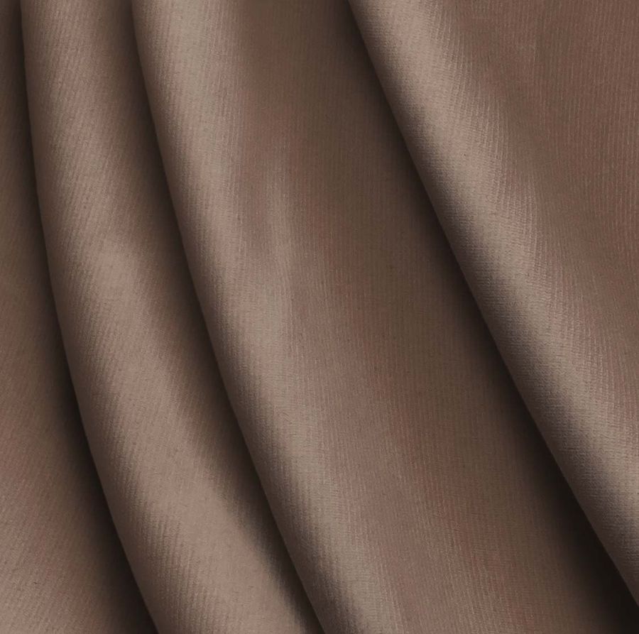 La tela base es Punto Roma Elástico - Lyon, una tela de punto compuesta de 97% POLIÉSTER y 3% ELASTANO, con un gramaje de 282 gr/m2 y un ancho de 150 cm, con una textura suave al tacto. El color del tejido impreso es Marron Nuez, con un CMYK de 36 47 53 31, creando un tono marrón sofisticado y cálido. Combinado con tonos neutros como beige y blanco crea una armonía en la paleta de colores. Esta tela está impresa con un color liso por impresión digital textil, a una sola cara de la tela.