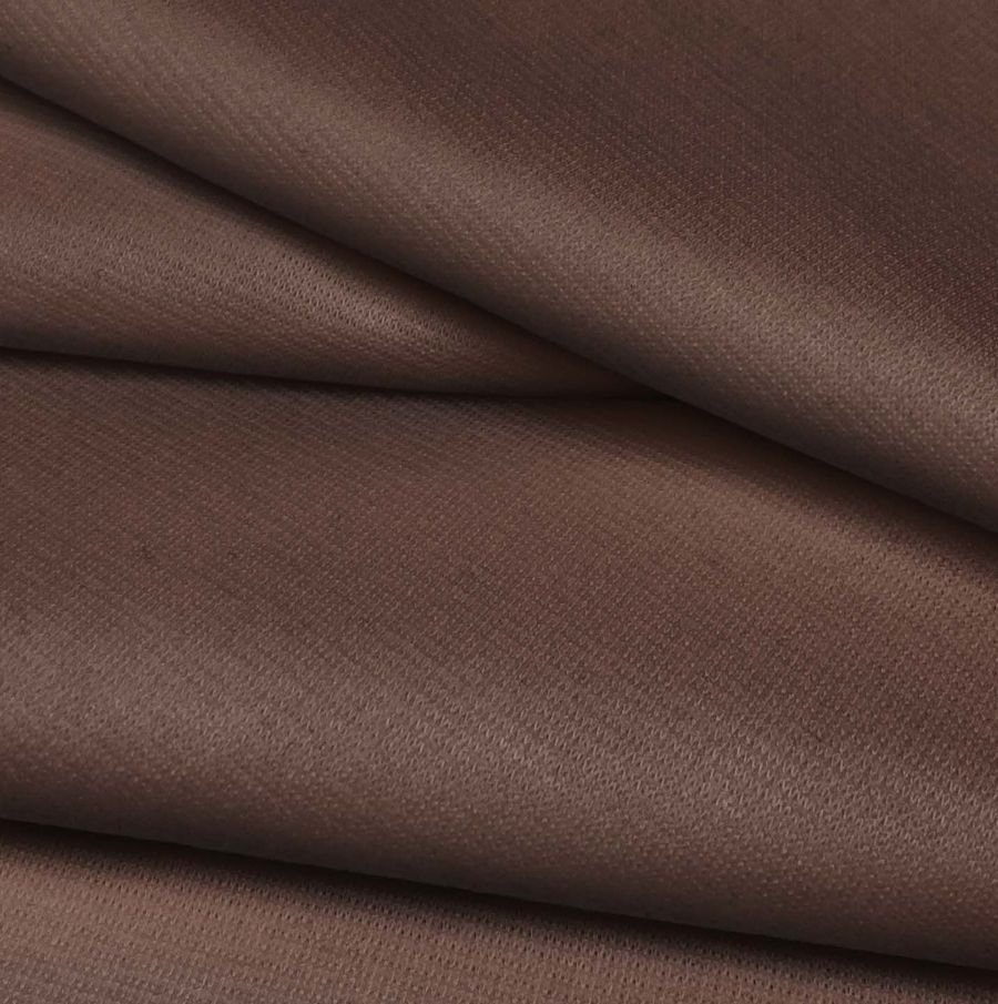 La tela base es el Punto Roma Elástico - Lyon, una tela de punto compuesta por un 97% de poliéster y un 3% de elastano, con un gramaje de 282 gr/m2 y una anchura de 150 cm. El color liso impreso en esta tela es de tonalidades marrón-pardo, con un CMYK de 42, 61, 60, 59, representando una combinación sofisticada y elegante entre tonos marrón y gris. Este color combina de forma ideal con tonalidades neutras como blanco, negro y gris, pero también funciona bien con verdes y rojos oscuros.