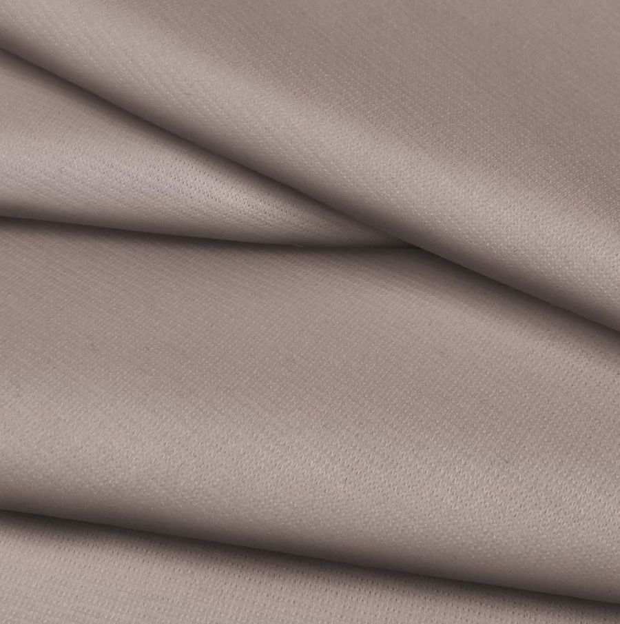 La tela base de este tejido es la Punto Roma Elástico - Lyon, una tela de punto compuesta por un 97% de poliéster y un 3% de elastano con un gramaje de 282 gr/m2. El color liso impreso es de un tono marrón plata pálido, CMYK 31 36 36 13, impreso en una sola cara por impresión digital textil.