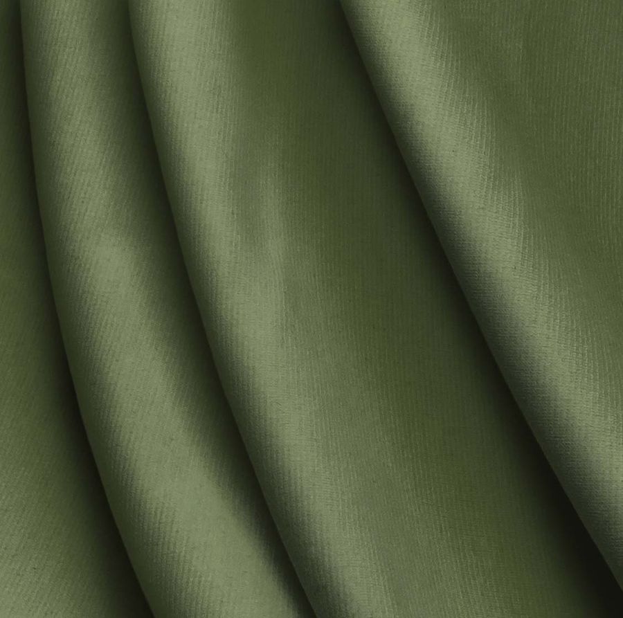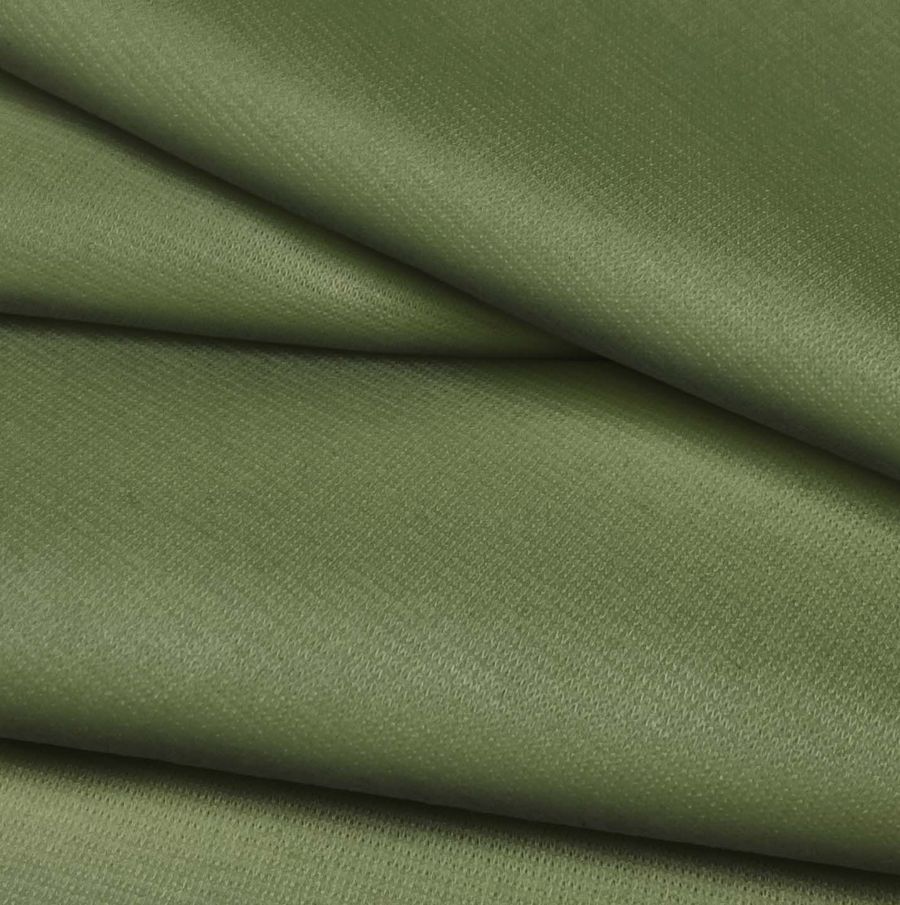 La tela base es el Punto Roma Elástico - Lyon, una tela de punto compuesta por un 97% de poliéster y un 3% de elastano, con un gramaje de 282 gr/m2 y un ancho de 150 cm. El color liso impreso en la tela es una mezcla de marrón y verde salvia, con un CMYK de 59, 37, 75 y 26, respectivamente. Este color secundario se caracteriza por su elegancia y sofisticación, remitiendo a la naturaleza y a la tranquilidad. Combina especialmente bien con tonos tierra, amarillos suaves y azules suaves.
