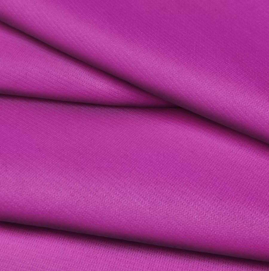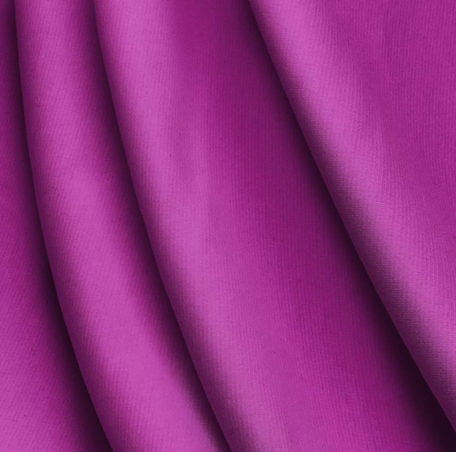 La tela base es el Punto Roma Elástico - Lyon, de composición 97% poliéster y 3% elastano, con un gramaje de 282 gr/m2 y un ancho de 150 cm. El color liso impreso es un morado bizantino, con un CMYK de 39 85 0 0. Este color simboliza la estabilidad, la tranquilidad y la creatividad. Es un color vibrante que combina bien con tonos marrones, grises y verdes.