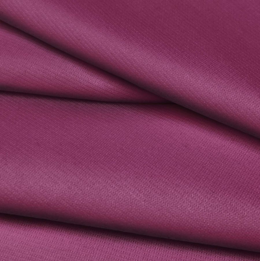 La tela base de este tejido es el Punto Roma Elástico - Lyon, una tela de punto compuesta por un 97% de poliéster y un 3% de elastano, con un gramaje de 282 gr/m2 y un ancho de 150 cm. El color liso impreso es de un tono morado boysemberry, que se obtiene mediante la combinación de las tintas cian (44), magenta (88), amarillo (29) y negro (21) en CMYK (44 88 29 21). Este tono morado tiene un carácter sobrio y elegante, que puede aportar calidez y profundidad a las prendas y productos hechos con este tejido.