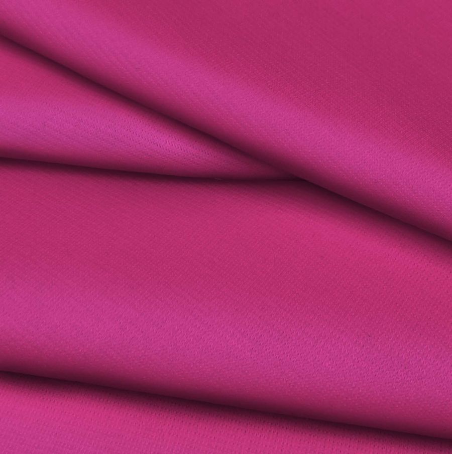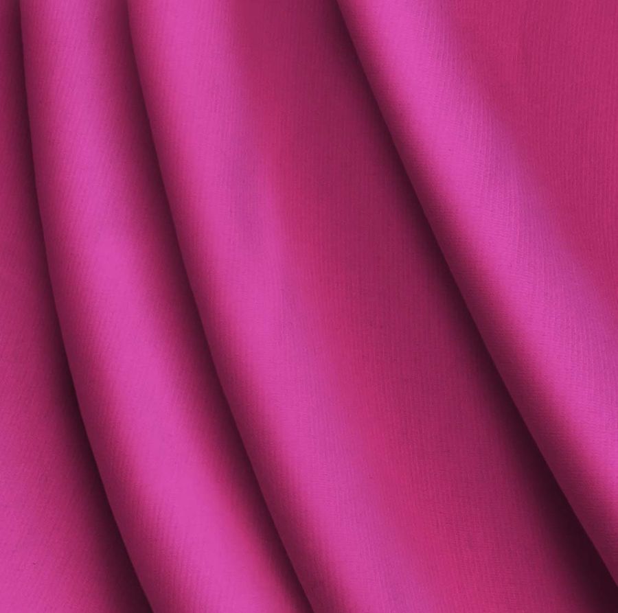 La tela base es el Punto Roma Elástico - Lyon, una Tela de Punto de 97% POLIÉSTER y 3% ELASTANO con un gramaje de 282 gr/m2 y una anchura de 150 cm. El color liso impreso en la tela es de un vibrante Morado-Magenta con un CMYK de 15 90 21 2. El color secundario es intenso, fuerte y vibrante, que combina bien con tonos blancos y negros, así como con tonos contrastantes como amarillos, turquesas y verdes.