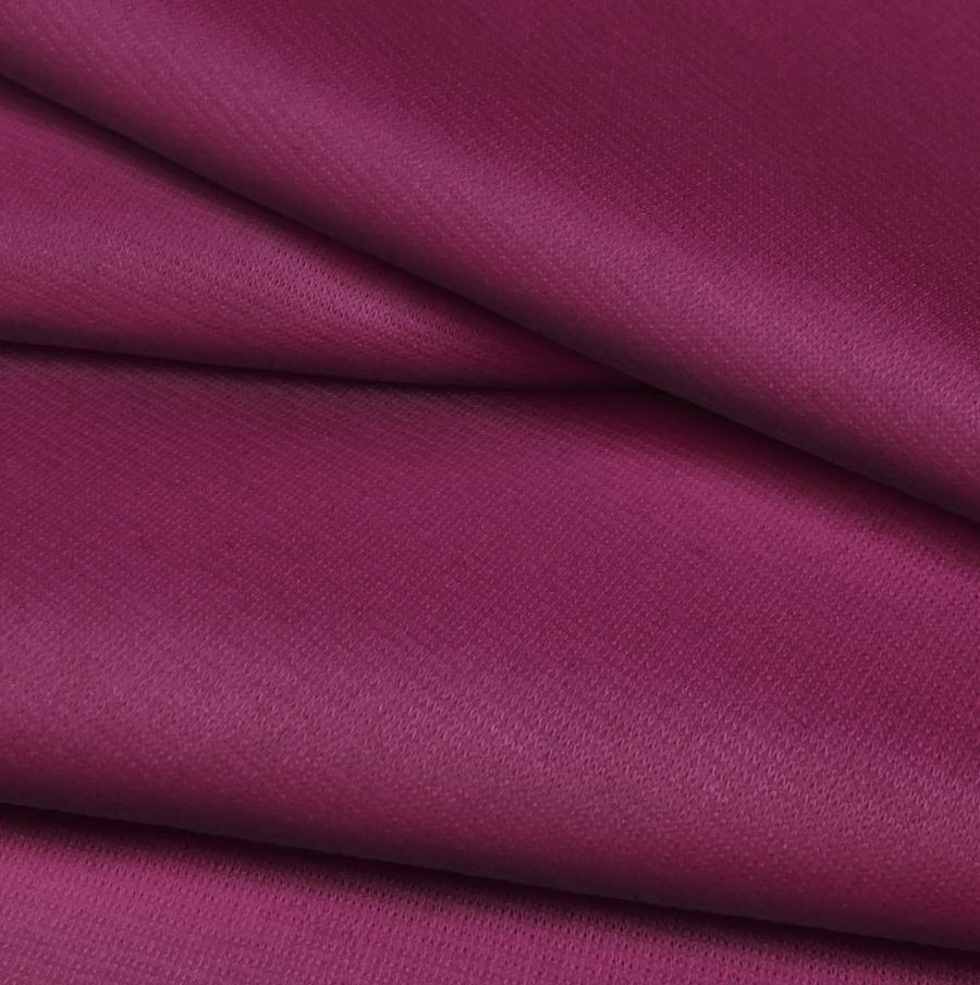 La tela base es Punto Roma Elástico - Lyon, una tela de punto con composición de 97% poliéster y 3% elastano, con un gramaje de 282 gr/m2 y ancho de 150 cm. El color liso impreso es Morado, Pensamiento Púrpura, que está compuesto por tinta cyan 41, magenta 98, yellow 32 y black 37, según CMYK 41 98 32 37. Este color simboliza la realeza y la nobleza, y técnicamente es un color profundo y saturado. Combina bien con colores pálidos como el blanco y el marfil, pero también con colores más llamativos como el turquesa y el amarillo. La tela está impresa con el color liso a una sola cara por impresión digital textil.