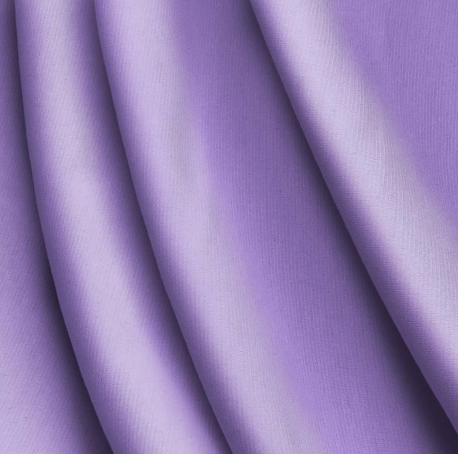 La tela base es Punto Roma Elástico - Lyon, compuesta por 97% de poliéster y 3% de elastano y con un gramaje de 282 gr/m2. El color liso impreso es Morado, con una mezcla de tinta cian de 41 y magenta de 48, lo que hace un CMYK de 41 48 0 0. Este color es suave y seductor, con un tono predominantemente rojizo que lo hace admirablemente compatible con tonos neutros como el beige y el gris.
