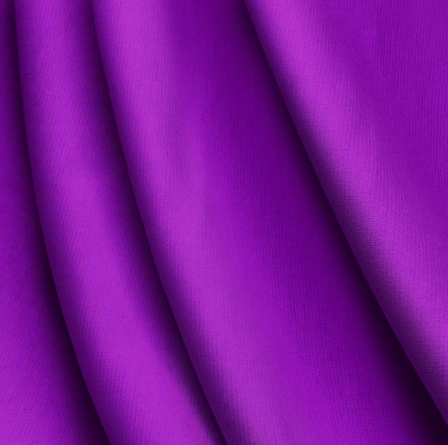 La tela base es el Punto Roma Elástico - Lyon, compuesta por un 97% de poliéster y un 3% de elastano, con un gramaje de 282 gr/m2 y un ancho de 150 cm. El color liso impreso es Morado/Púrpura Munsell, con un CMYK de 64 86 0 0. El color secundario es un tono de púrpura profundo que simboliza la realeza y la creatividad. Se combina bien con tonos rosas, grises y negros para crear diseños elegantes y con tonos amarillos y verdes para diseños más atrevidos. La tela está impresa con color liso a una sola cara por impresión digital textil.