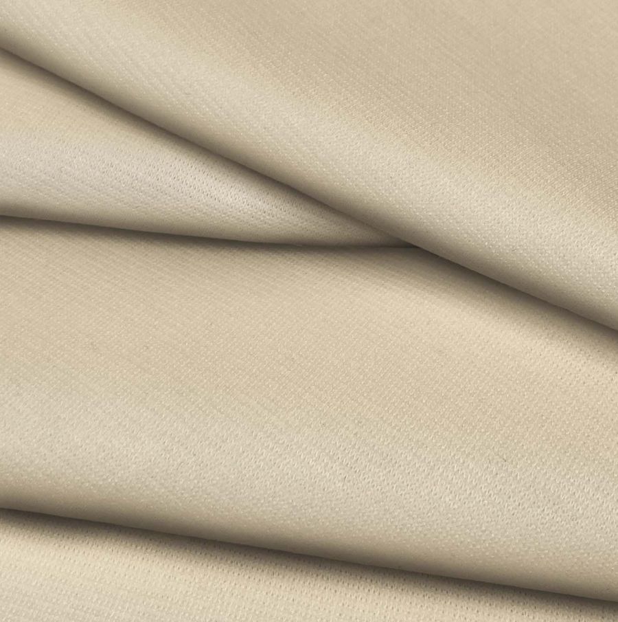 La tela base utilizada para este tejido es el Punto Roma Elástico - Lyon. Es una tela de punto compuesta por un 97% de poliéster y un 3% de elastano, con un gramaje de 282 gr/m2 y un ancho de 150 cm. El color impreso es un tono naranja-melocotón amarillo, con un CMYK de 2 12 32 0. Este color resulta de la combinación de las tintas cian, magenta y amarilla, sin utilización de tinta negra.