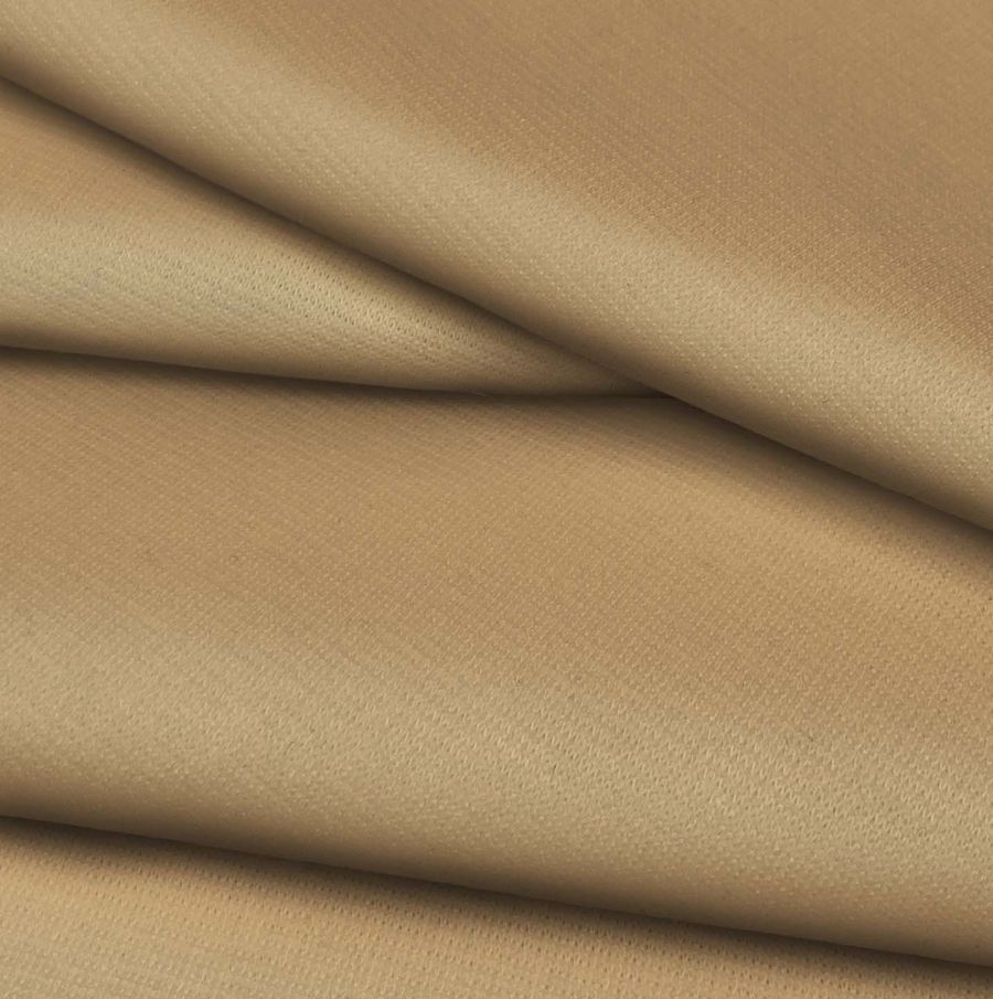 La tela base de este producto es el Punto Roma Elástico - Lyon, una tela de punto compuesta por un 97% de poliéster y un 3% de elastano, con un gramaje de 282 gr/m2 y un ancho de 150 cm. Este tejido se caracteriza por su suavidad al tacto, lo que lo hace muy cómodo de llevar. El color liso impreso es una mezcla de naranja y camello, con un CMYK de 22 37 60 10. Este tono de color es cálido y tierra, dando una sensación acogedora y natural.