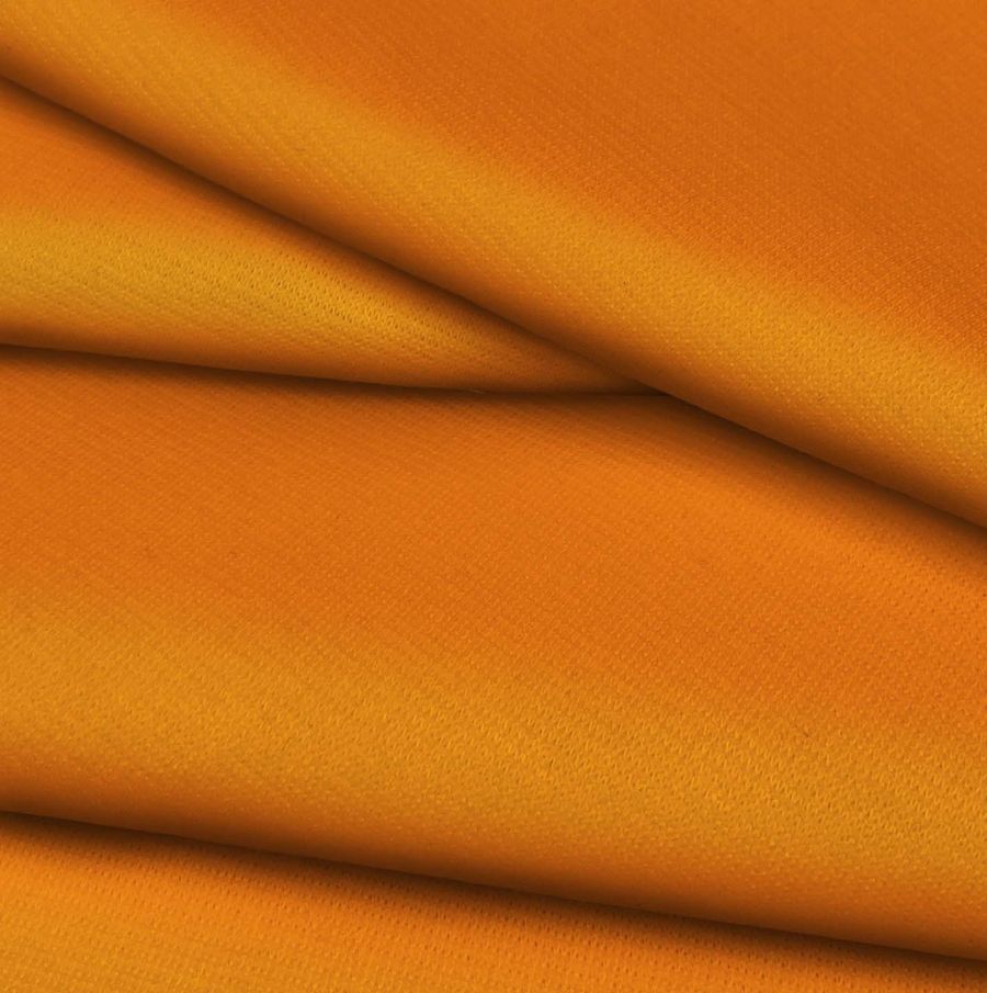 La tela base es denominada Punto Roma Elástico - Lyon y está compuesta en un 97% de poliéster y un 3% de elastano. Su gramaje es de 282 gr/m2 y su ancho es de 150 cm. El color liso impreso es naranja cangrejo con un CMYK de 0 64 91 0, lo que aporta una tonalidad cálida y vibrante. Este color secundario se caracteriza por su capacidad de evocar emociones positivas como la energía, alegría y vitalidad. Además, es muy versátil y se combina perfectamente con tonos pasteles, azules y grises.