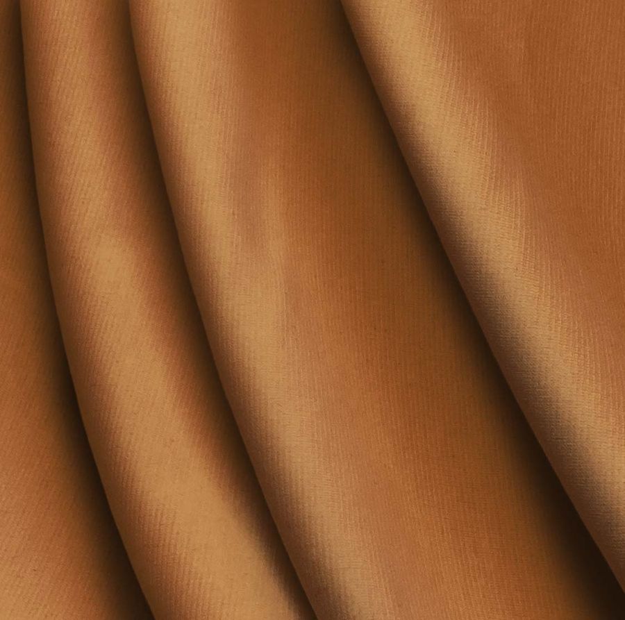 La tela base utilizada es el Punto Roma Elástico - Lyon, una tela de punto compuesta por un 97% de poliéster y un 3% de elastano, con un gramaje de 282 g/m2 y un ancho de 150 cm. El color liso impreso sobre esta tela es una combinación de naranja y cobre, con un CMYK de 22 57 85 13. Este color secundario es un tono cálido y vibrante que se asocia con la energía, la creatividad y la vitalidad. Además, combina muy bien con colores neutros como el blanco, el gris y el negro, así como con tonos terracota, marrón y dorado.