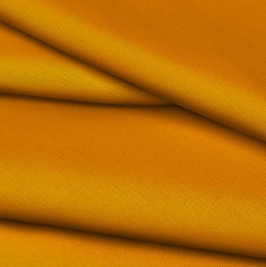 La tela base es el Punto Roma Elástico - Lyon, una tela de punto compuesta principalmente por poliéster con un 3% de elastano, lo que le confiere una gran elasticidad y comodidad para su uso en piezas de moda como tops, camisetas, pantalones, vestidos, jerseys, y también en artículos textiles para el hogar como servilletas. Con una densidad de 282 gr/m2 y un ancho de 150 cm, esta tela se presenta en un color liso naranja de seguridad impreso por sublimación, con un CMYK de 0 60 99 0 que brinda una intensidad y vivacidad al color.